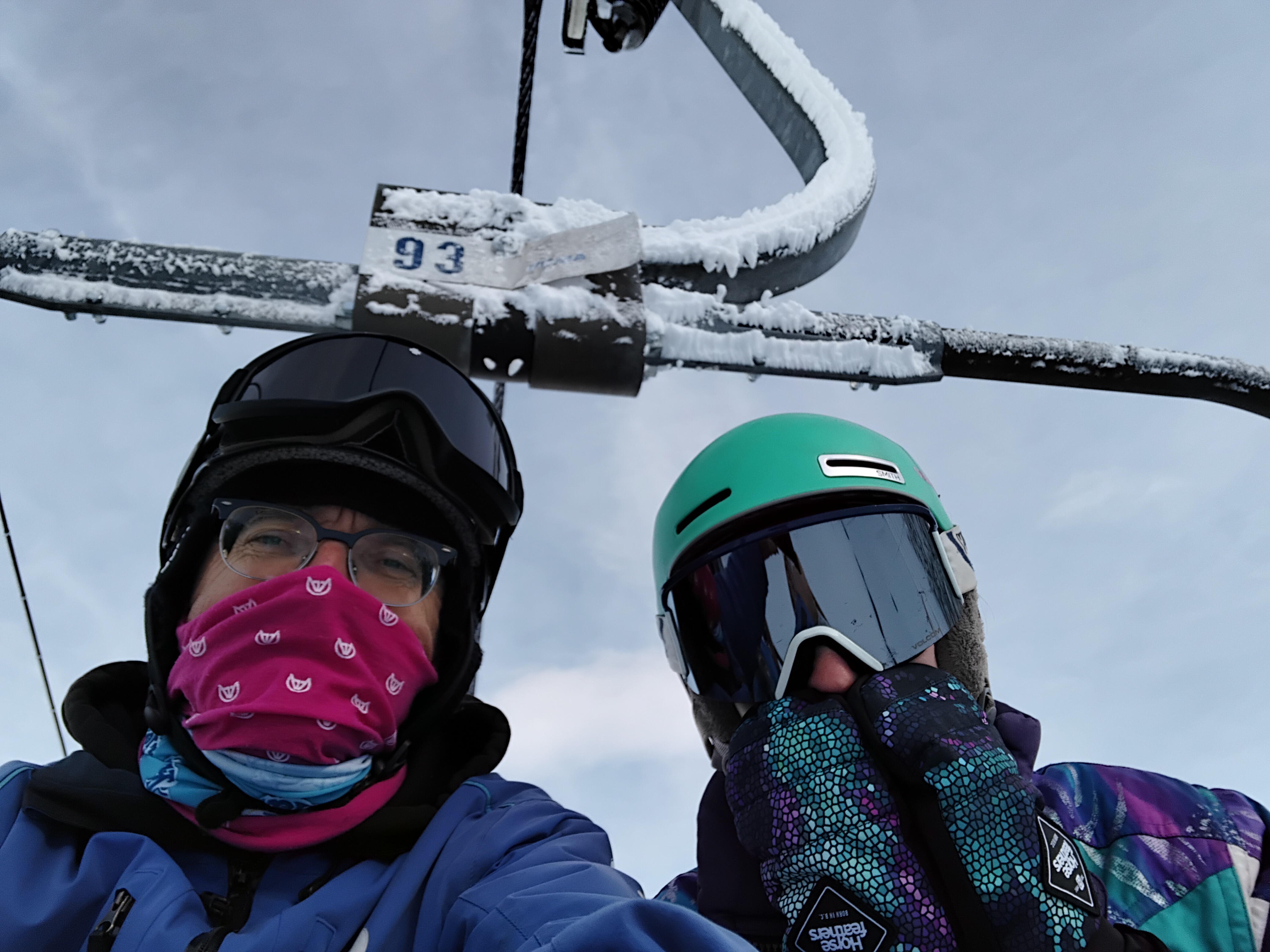 Boí and Papa on a frosty day. #94 is a repeat of the very last chairlift of last season. At this point with over half the chairs accounted for, we have a 50/50 chance of a repeat.